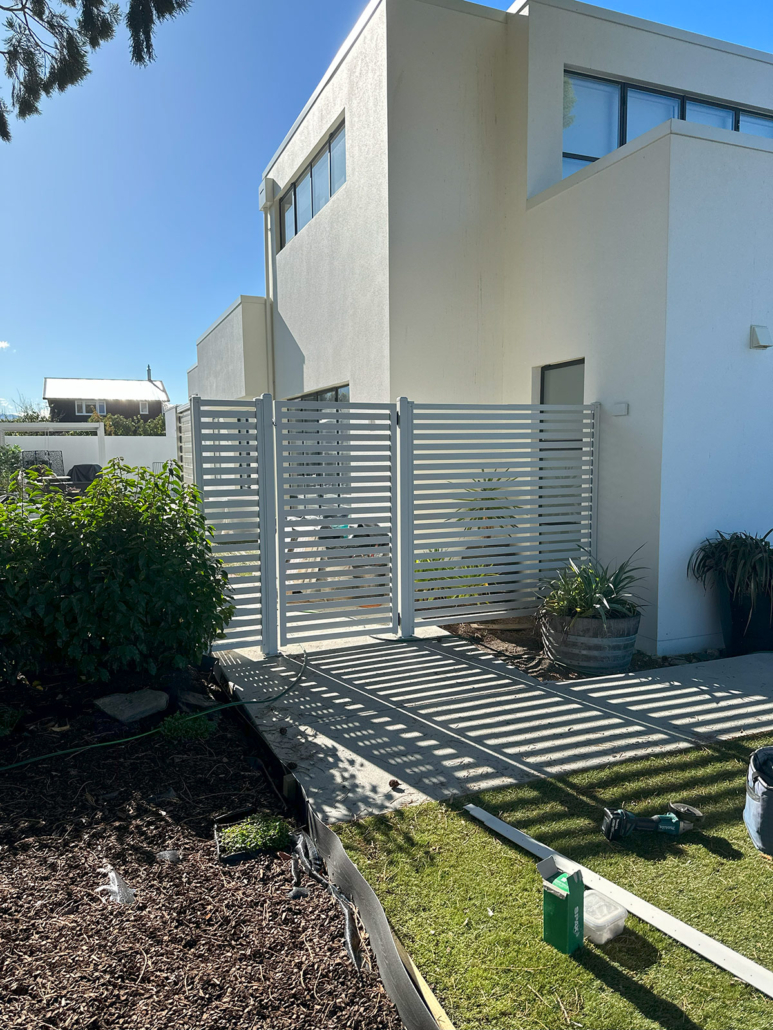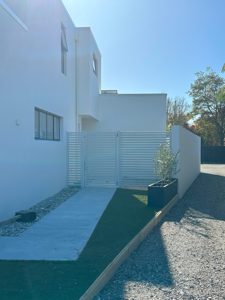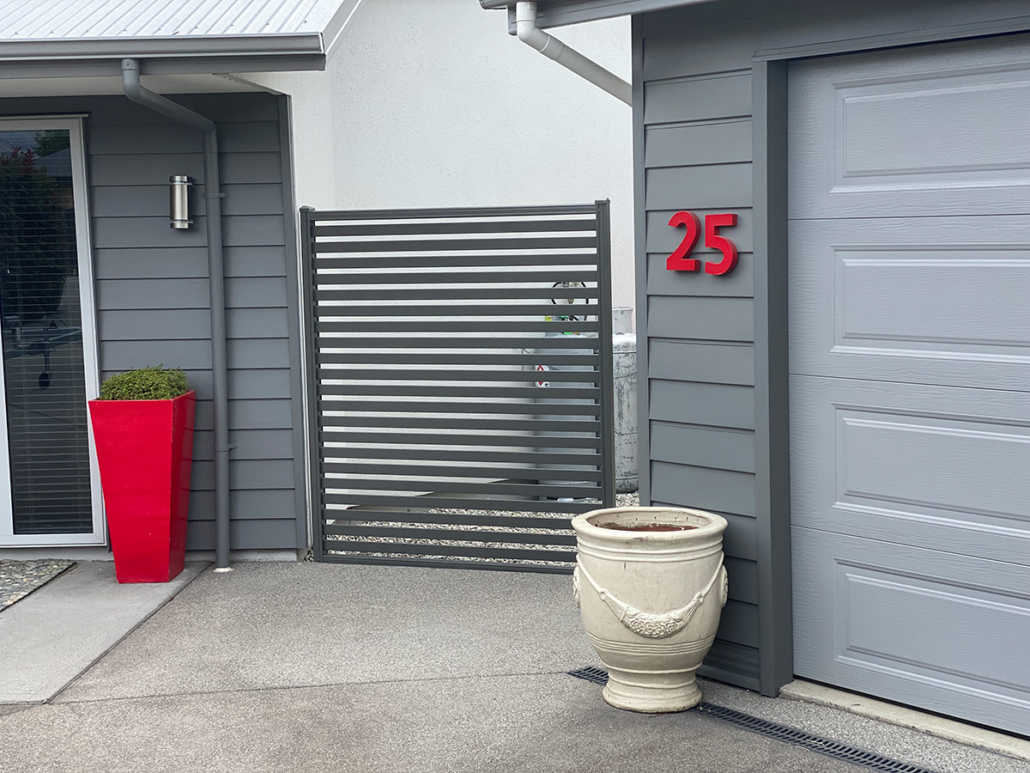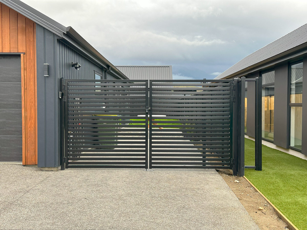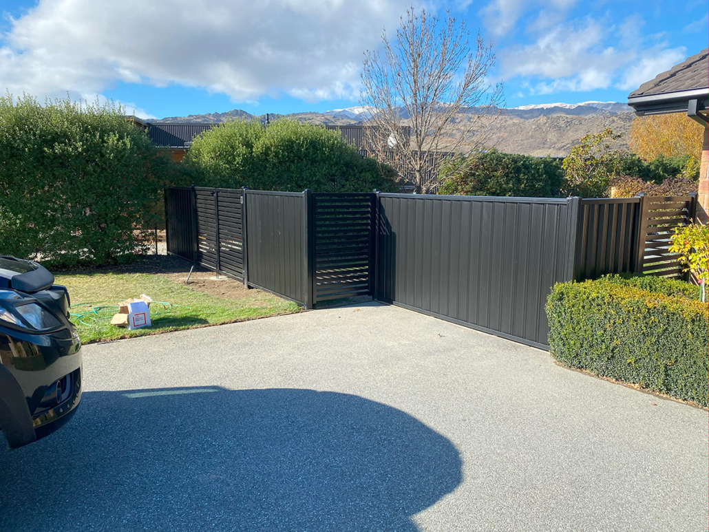 Custom made gates can also be manufactured with timber slats to match the cladding style of the house or we can match any COLORSTEEL® fence.